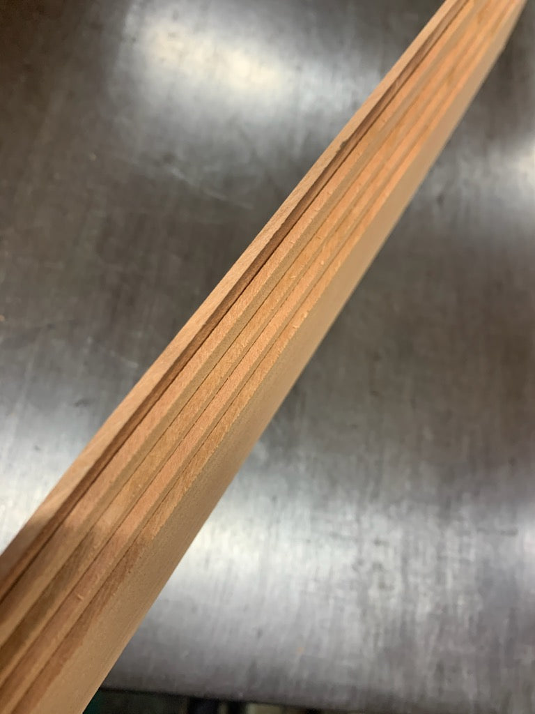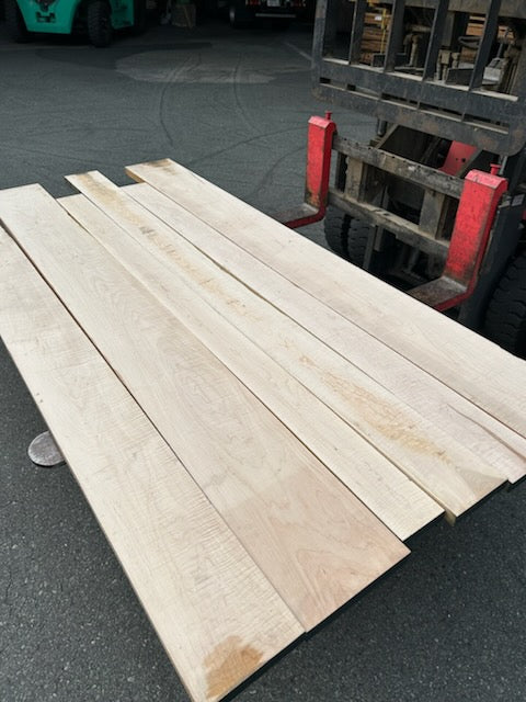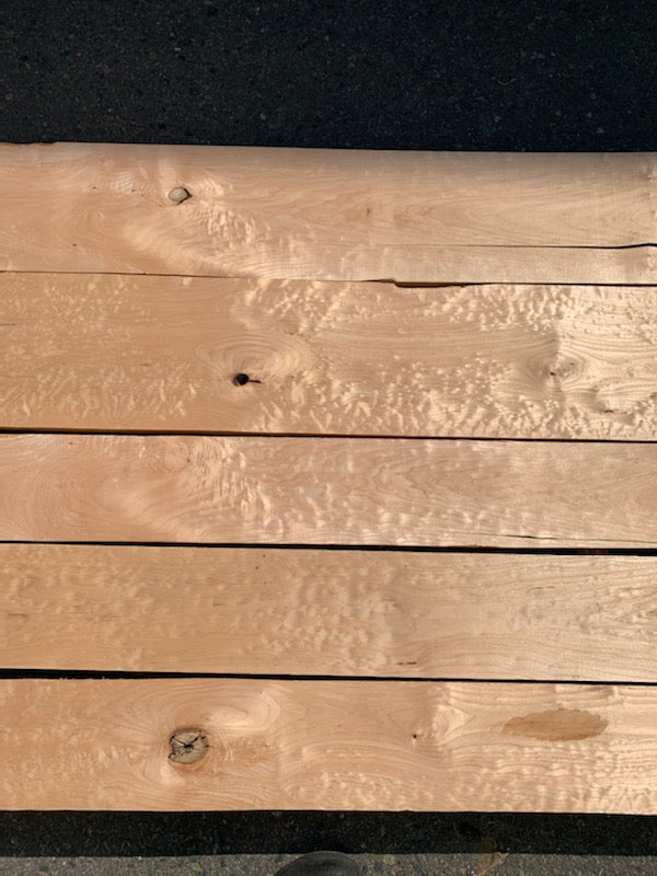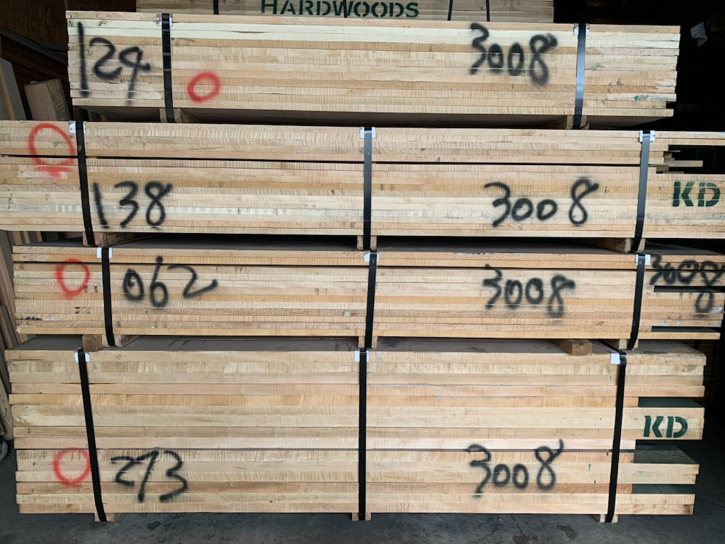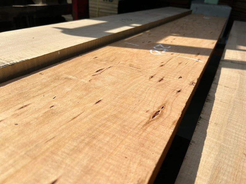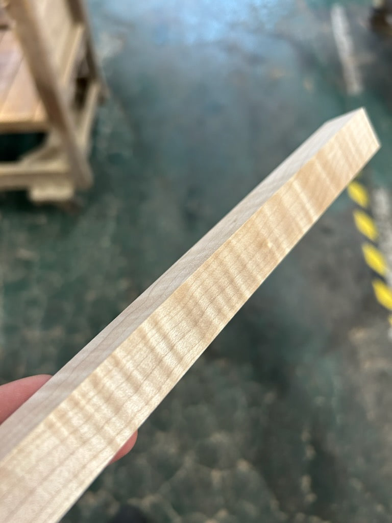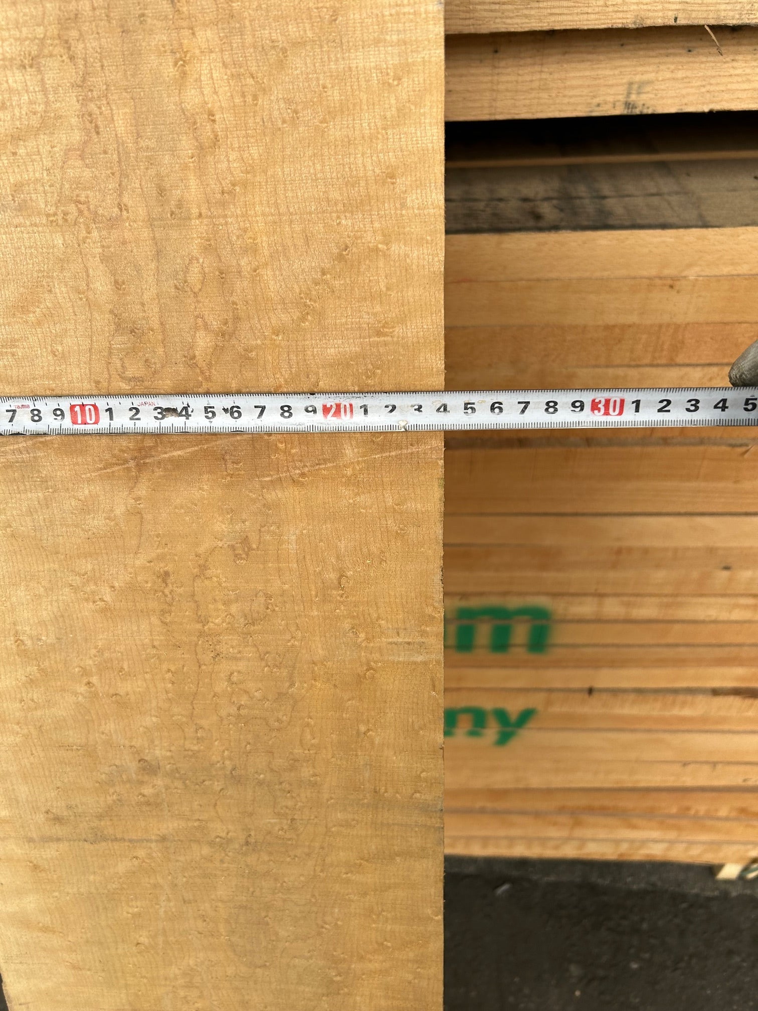 今回入荷したカーリーメープルは、厚み約25.4mm(1インチ/4/4インチ)の無垢材です。