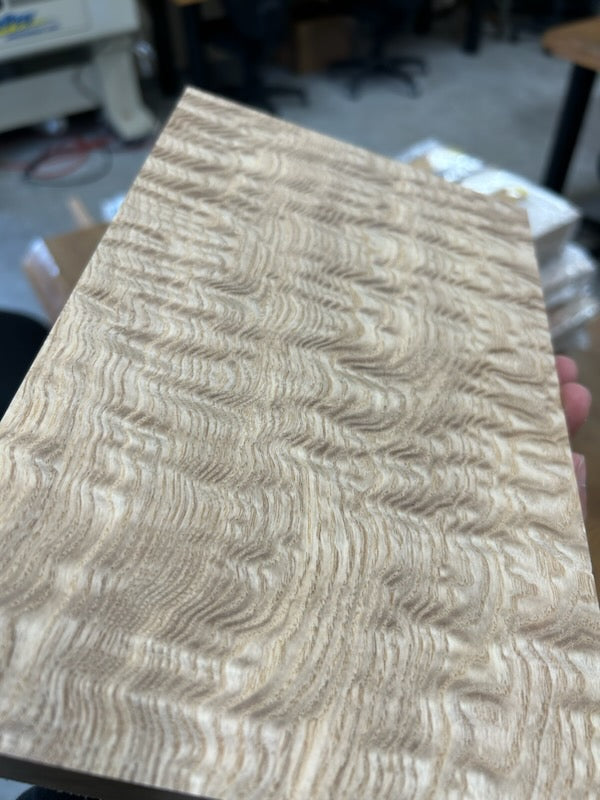このカーリー杢が美しく浮き上がったメープル材は、北米産の広葉樹の中でもとりわけ人気があり、ギターや高級家具の材料としても知られています。